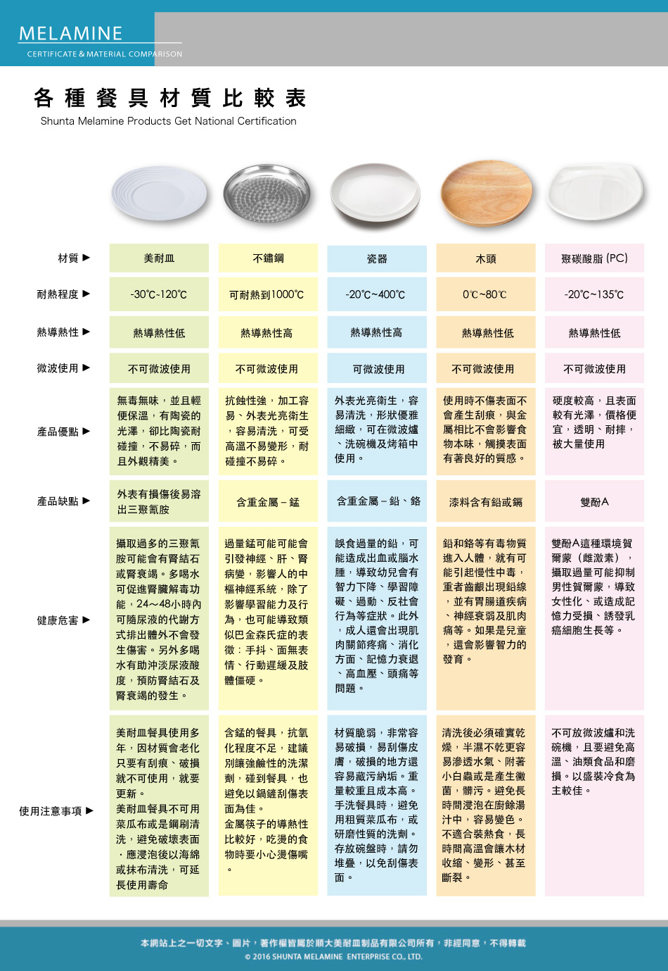 各種餐具材質比較
